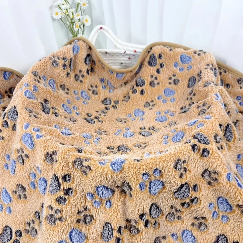 Can be used as pet bed blanket or mat, very useful. Fashion paw print design, with cotton edging of fine sewing.